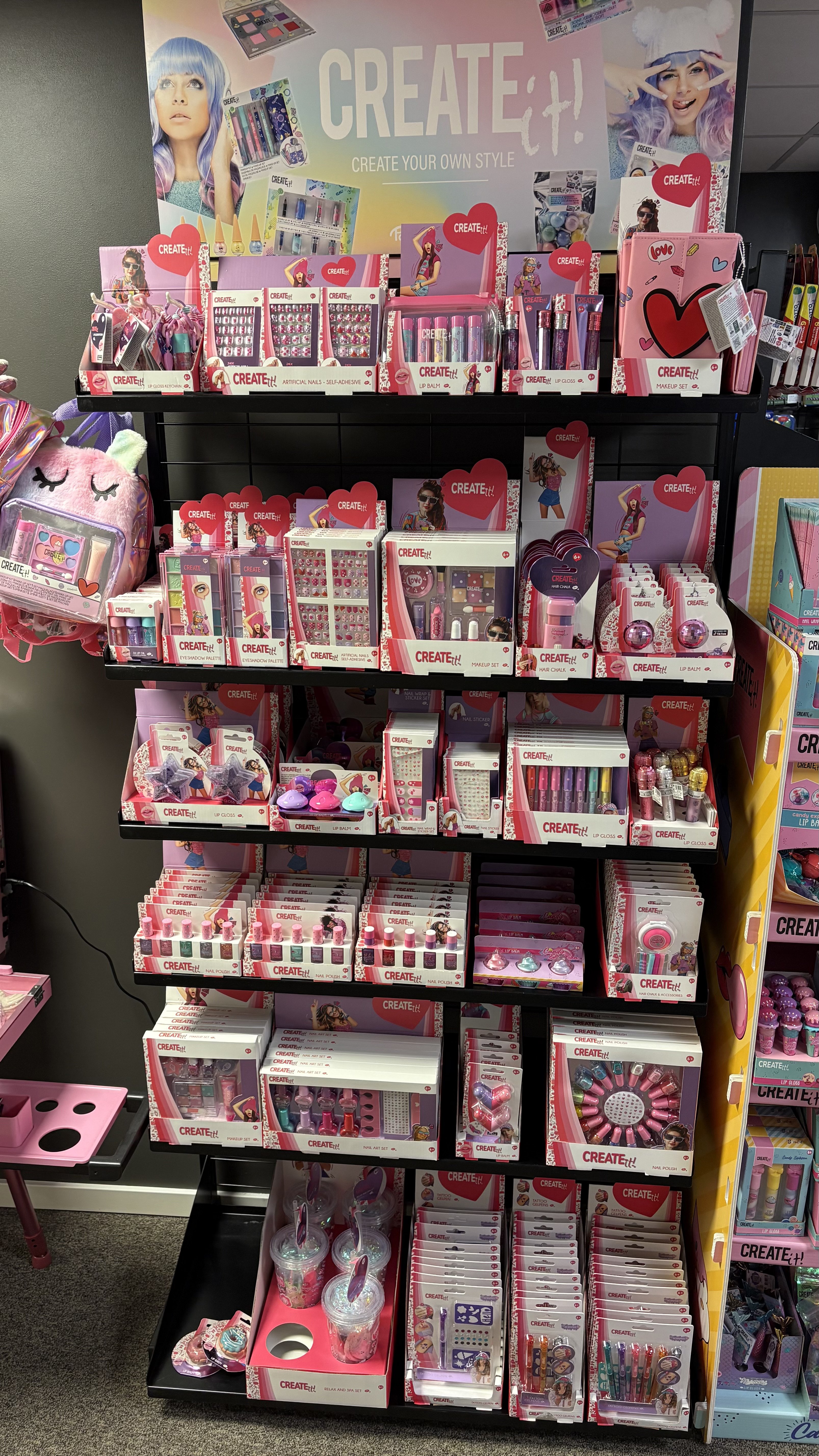 Sort gulvstativ med justerbare hylder. Perfekt til at udsætte farverige produkter fra Tinka, oprette det! eller andre varer fra papirkompetencen.